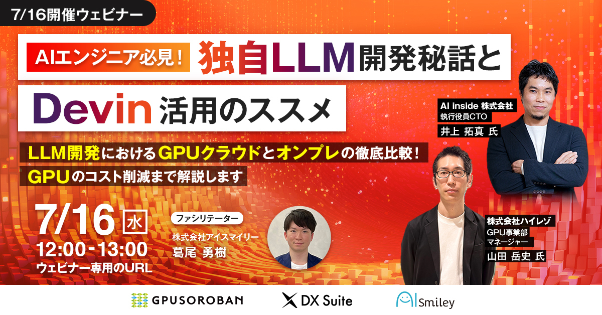 【7/16開催ウェビナー】AIエンジニア必見!独自LLM開発秘話とDevin活用のススメ