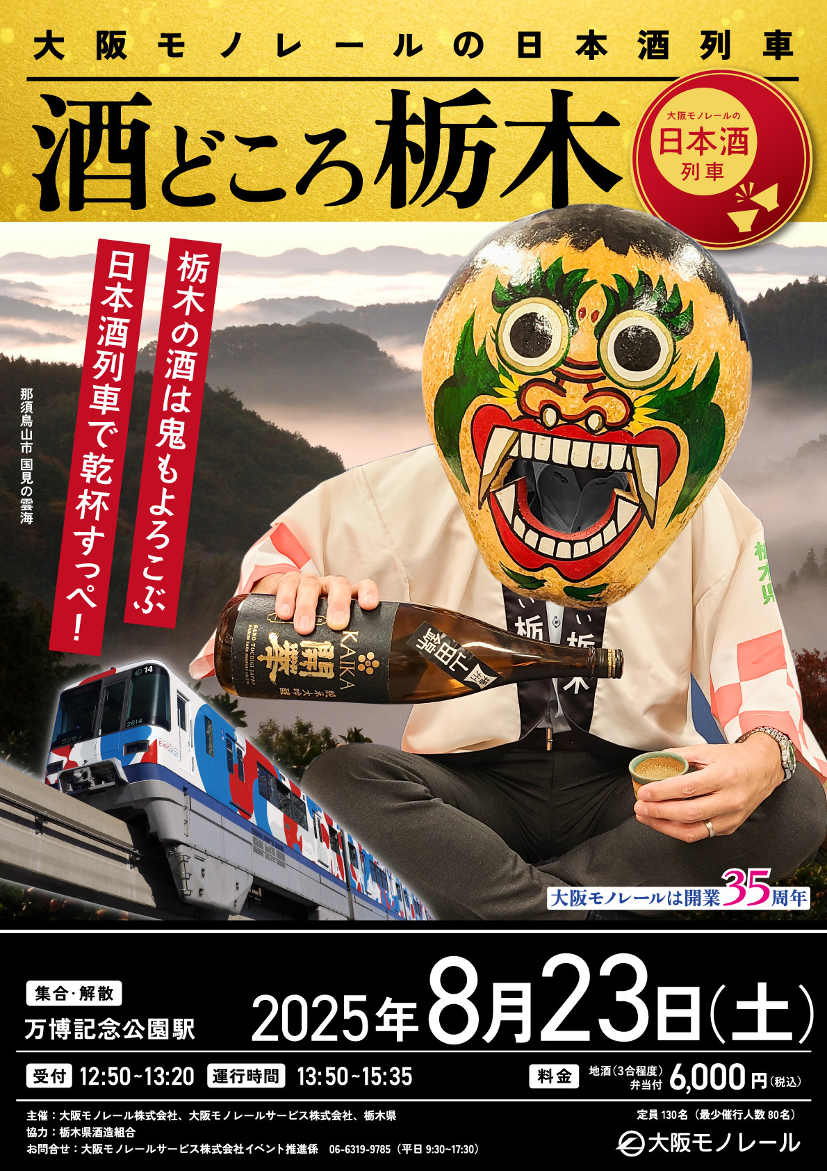 大阪モノレールの日本酒列車 酒どころ栃木~栃木の酒は鬼もよろこぶ 日本酒列車で乾杯すっぺ!~