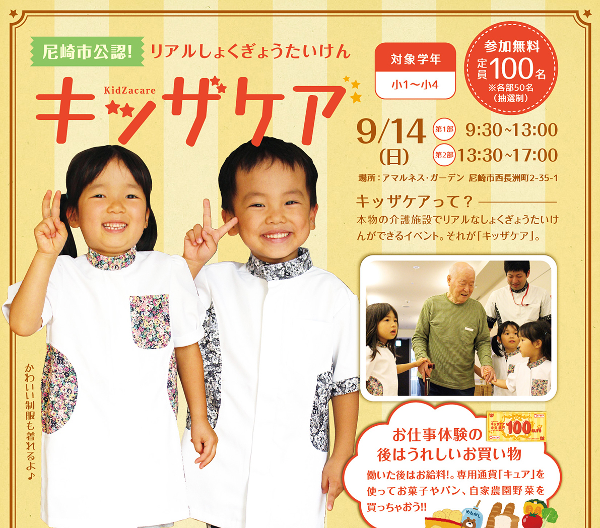 本物の介護施設で体験する、本格職業体験イベント「キッザケア」9/14(日)開催〈主催・運営:社会福祉法人あかね〉