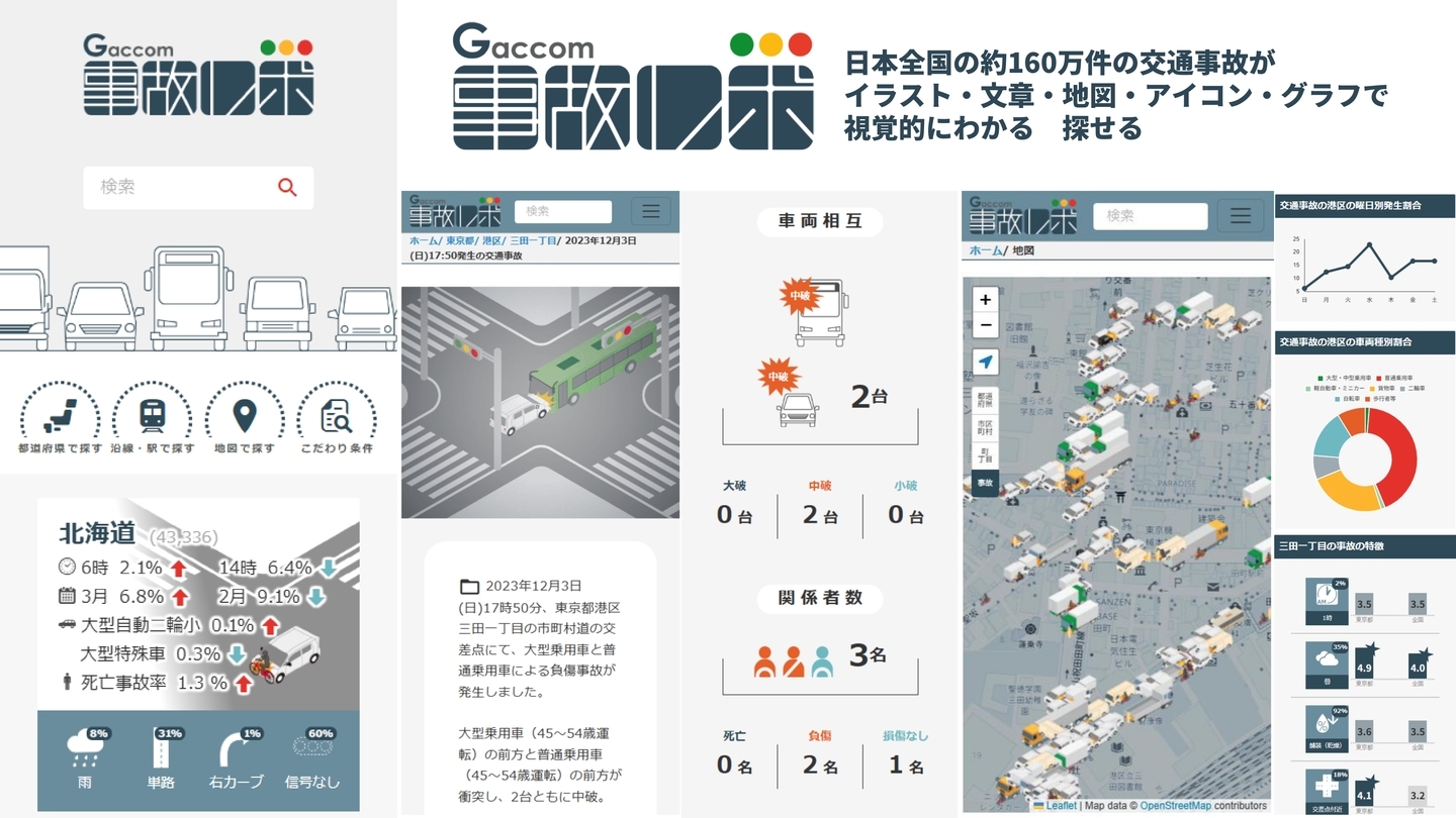 全国160万件の交通事故を可視化、「ガッコム事故レポ」公開~オープンデータを活用し、生活圏内の事故情報を地図・イラスト・文章でわかりやすく~