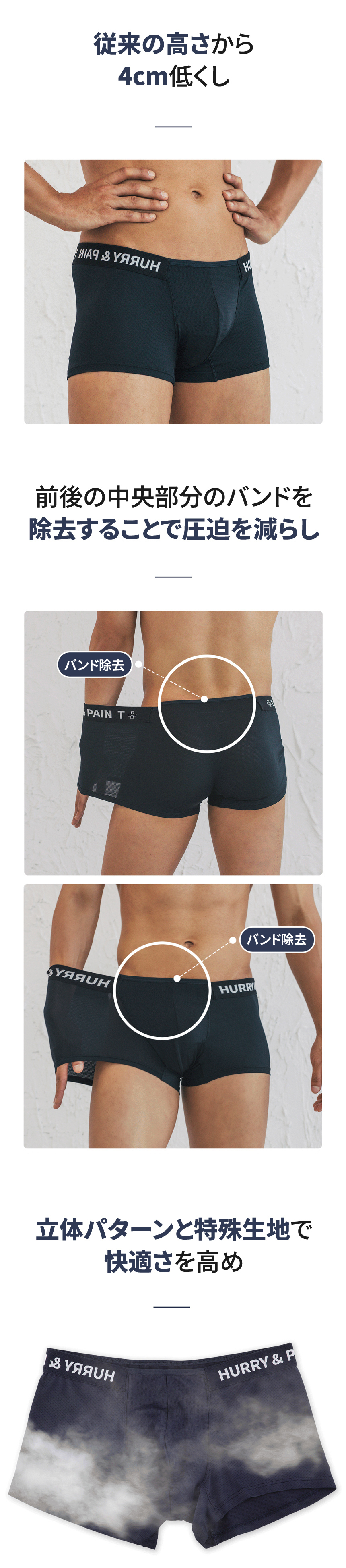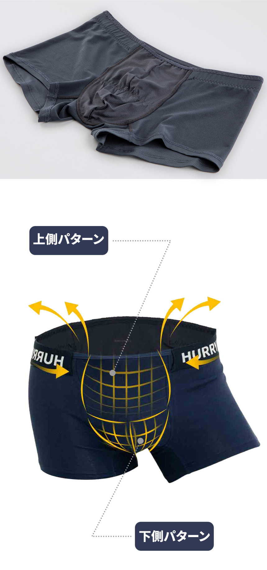 3D設計されており、パンツを履いた後に再び触る必要がなく、主要部分が上下の空間に自動的に分離され、楽で衛生的な構造です。 重要な2ヶ所を上下をしっかり分離してくれるので、肌がくっついてできる臭いや汗を防ぐのに役立ちます。
