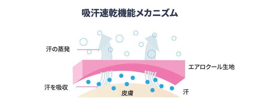 ムレにくく!多層機能素材!エアロクール×ATB-UV素材で抗菌·防臭·吸汗速乾でさらさら