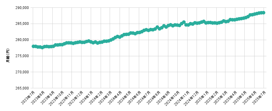 全国正社員平均月給は「288,623円」【2025年7月度 正社員平均月給・求人数レポート】