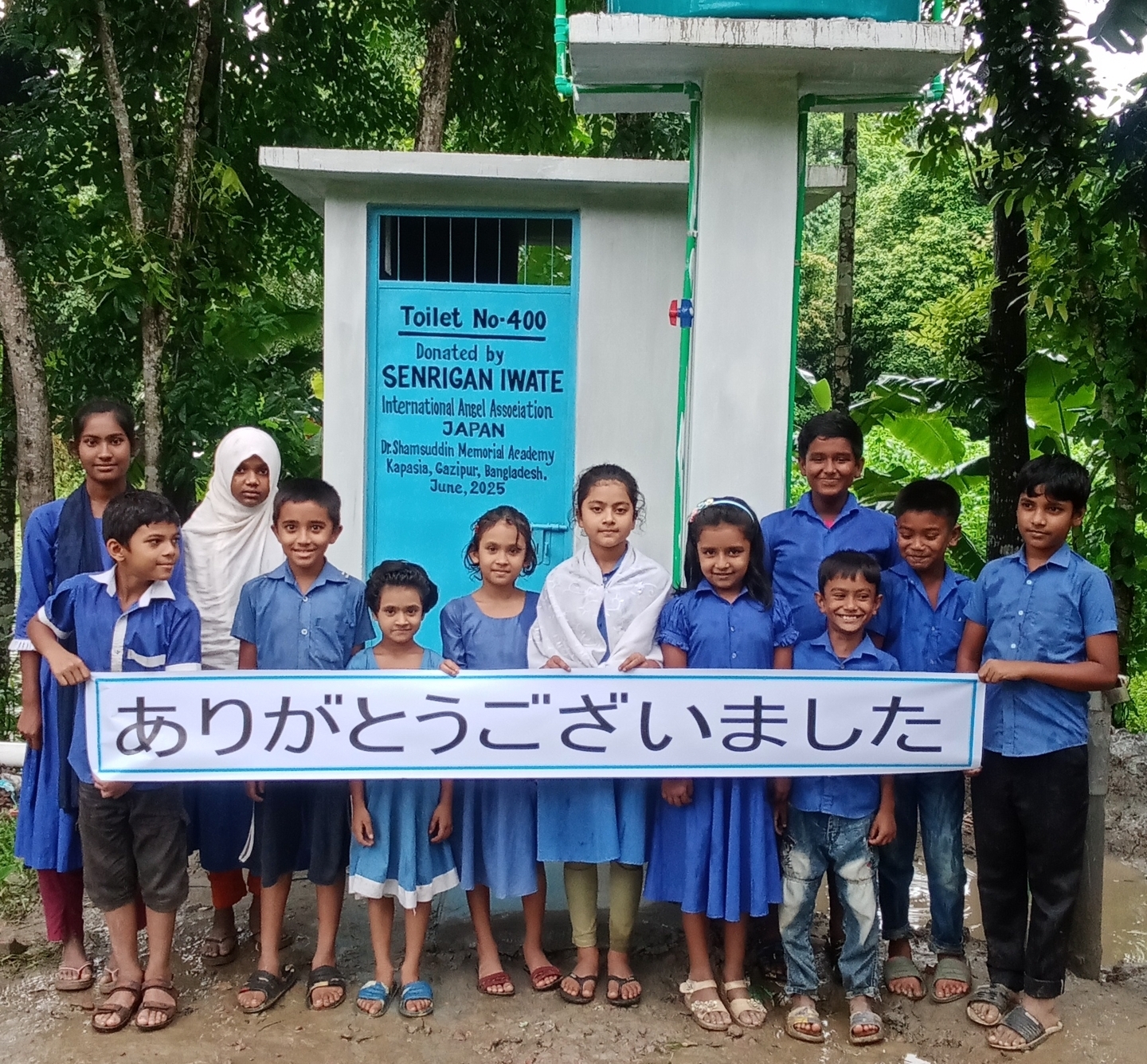 株式会社千里眼は、認定NPO法人国際エンゼル協会と連携し、2019年からバングラデシュ農村部の学校にトイレや井戸を設置する支援活動を行っております。このたび、トイレ不足が深刻な地域において、新たに7校への設置が完了し、子どもたちは清潔で安全な設備を喜び、トイレ外壁には「SENRIGAN(千里眼)」のロゴが掲げられました。