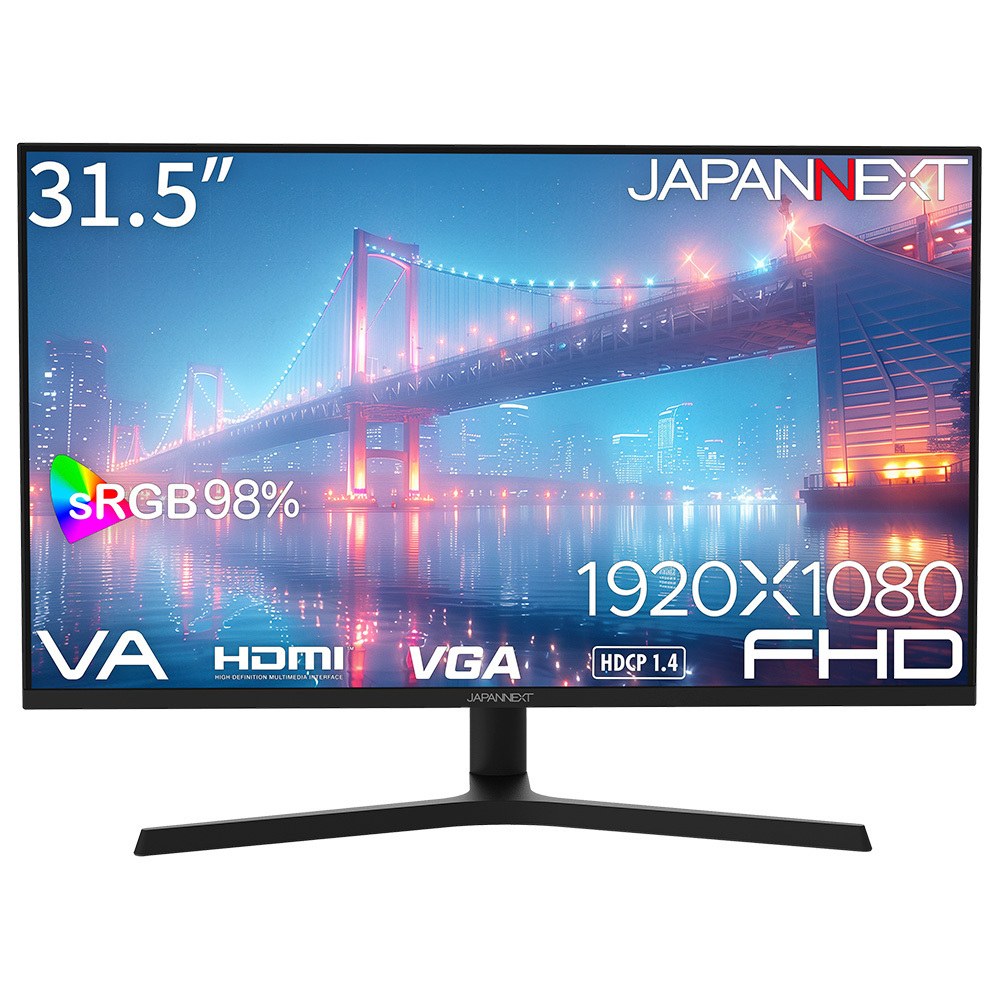 本製品は、31.5インチのVAパネルを搭載し、使いやすいフルHD(1920x1080)解像度に対応した液晶モニターです。