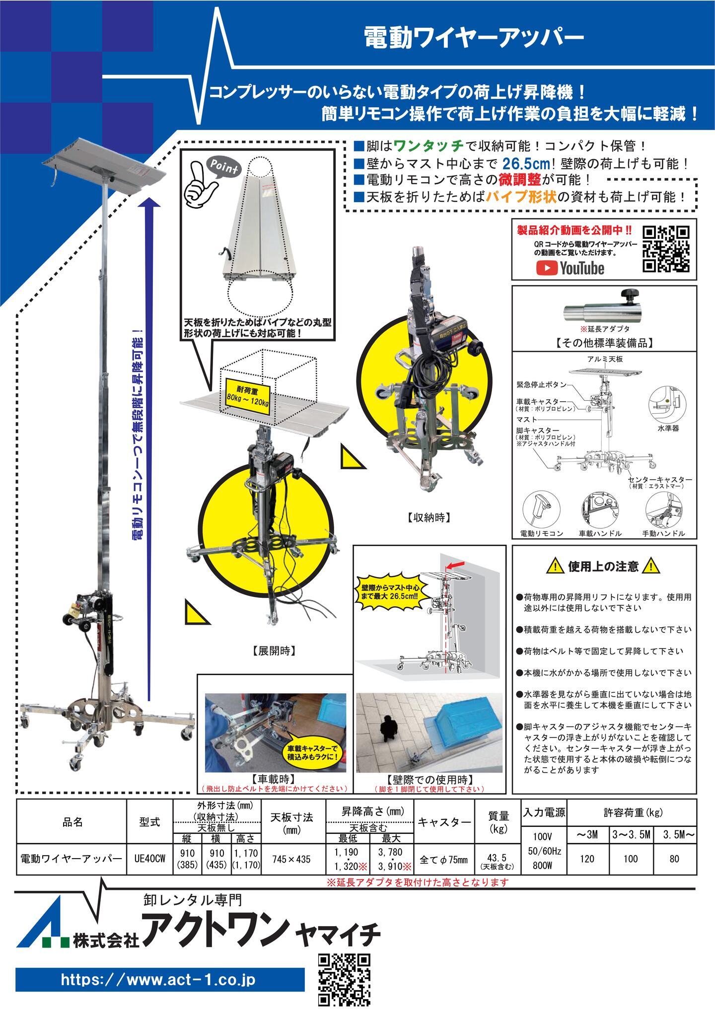 【アクトワンヤマイチ】新規取扱商品「電動ワイヤーアッパー」レンタル開始