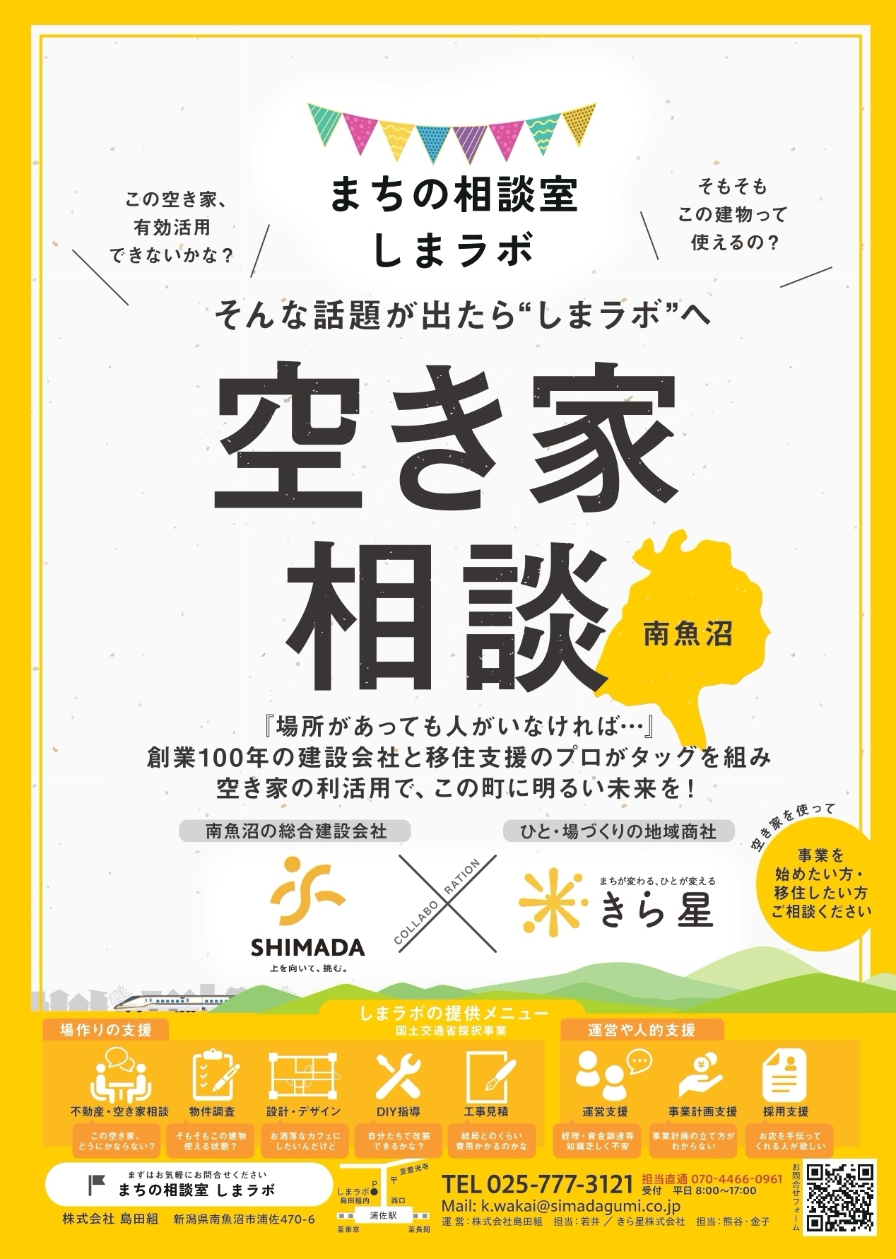 移住支援・地域プロデュースを手がける、きら星株式会社(代表取締役:伊藤 綾、本社:新潟県湯沢町)と地元密着の建設会社である株式会社島田組(代表取締役:島田 奏大 、本社:新潟県南魚沼市)は、この度、国土交通省が公募する「令和7年度 空き家対策モデル事業」に共同事業として採択されたことをお知らせいたします。本事業は、空き家再生の入り口となる「施工前提案型流通モデル」を構築し、地域の空き家対策を推進することを目的としています。