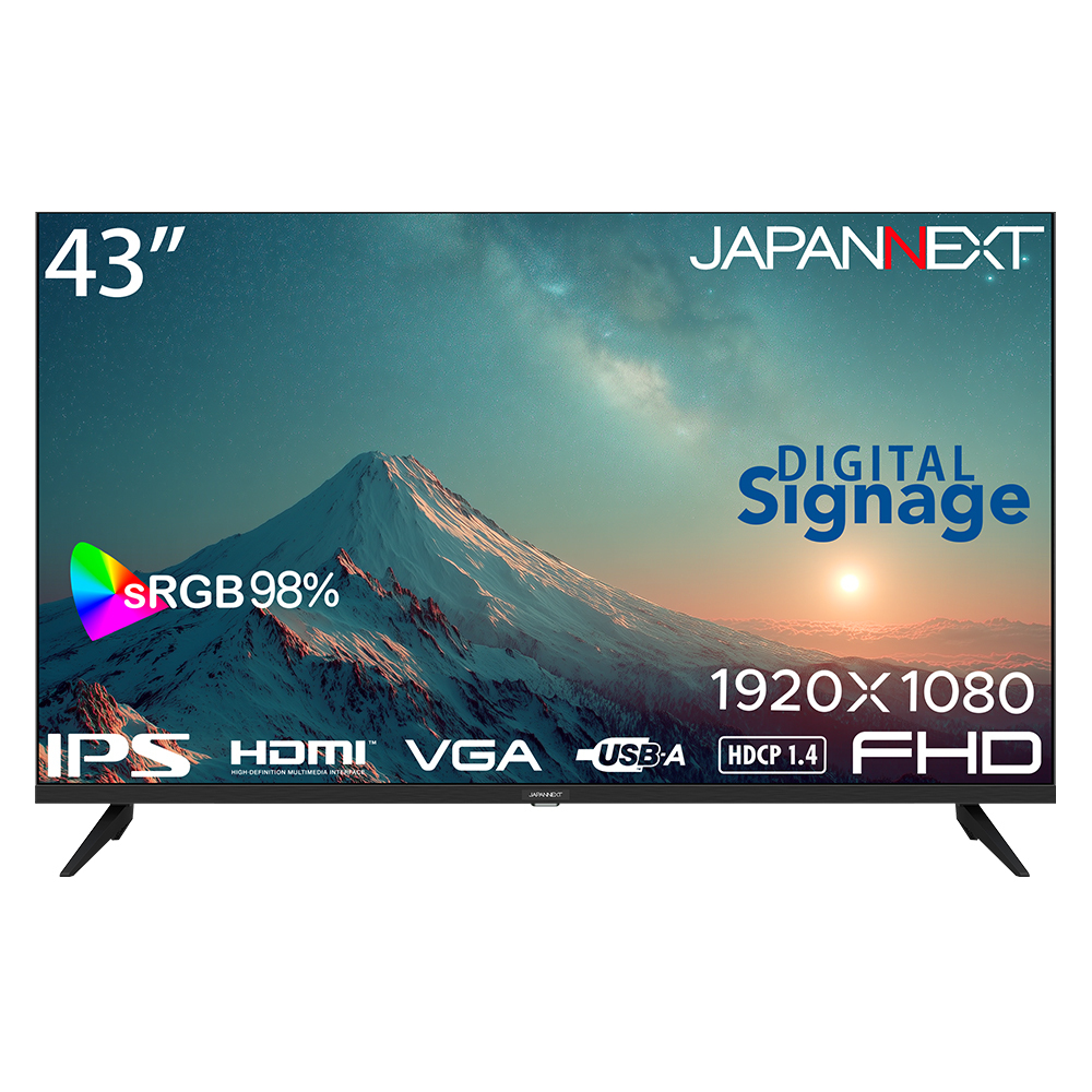 JAPANNEXTが43インチ IPSパネル搭載 USBメモリ再生に対応した大型フルHD液晶モニターをAmazon限定 33,980円で8月8日(金)に発売