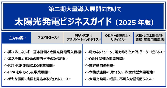 「太陽光発電ビジネスガイド 2025年版 ~第二期大量導入展開に向けて」 発行のお知らせ (資源総合システム)