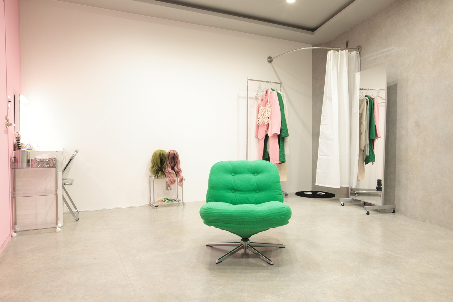 韓国トレンドを取り入れたおしゃれな空間で、背景はピンク・白・コンクリートの3種類をご用意しています。