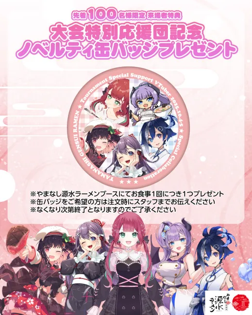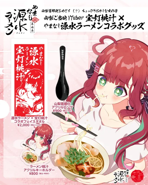 国内最大級の道の駅グルメイベント「道-1グランプリ」に初エントリーの山梨ご当地ラーメン「やまなし源水ラーメン」が、宝灯桃汁ちゃんらVTuberによる応援団を結成