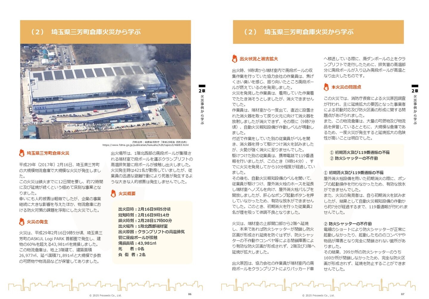 過去の火災事例や法令改正の背景、当時の制度やその変更意図に至るまでひとつひとつ丁寧に調査を行い、受講者の理解を深めるために専門用語を避けつつ、現場視点で背景や影響をわかりやすく伝える工夫を随所に盛り込みながら、原稿執筆から教材制作まで一貫してご協力いただきました。