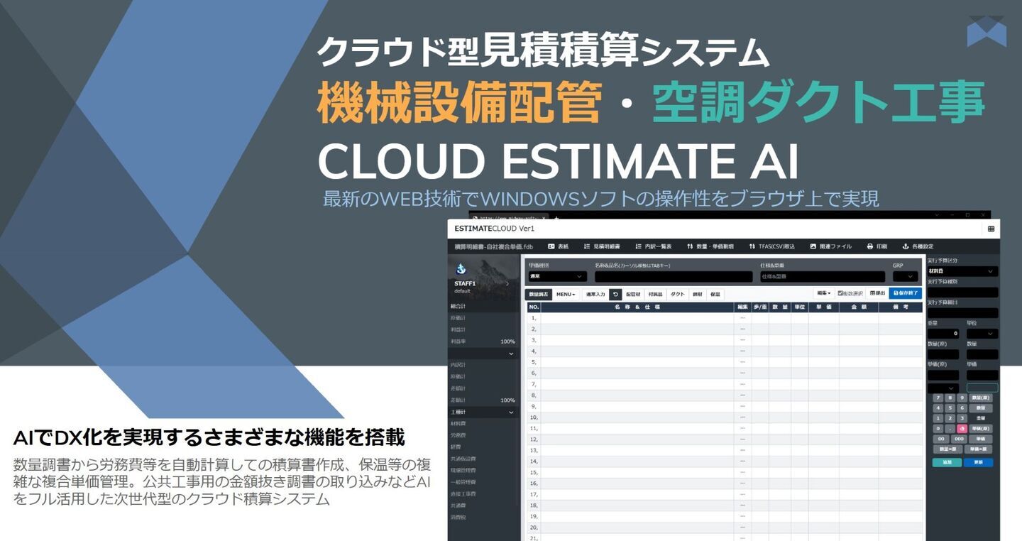 【8月25日締切】機械設備配管・空調ダクト用積算システム「クラウドエスティメイト」申込で仕様書作成クラウド「MDBINDER」(月額3.3万円相当)を無償提供
