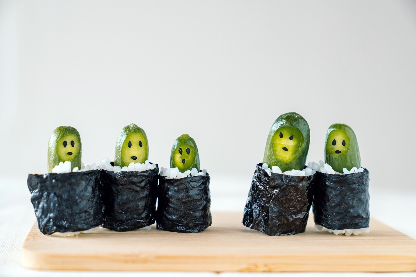 コロンとした小さいフォルムはそのままランチボックスに収まり、お弁当のかわいさと栄養を手軽にアップ。巻き寿司や断面萌(も)えサンドイッチなど、さまざまなアレンジが楽しめます。通常サイズのキュウリと違い、買ったのに食べきれず腐らせてしまった、という心配も無用。おいしく食べてフードロスの削減にもつながる、カラダにも環境にも優しい商品です。