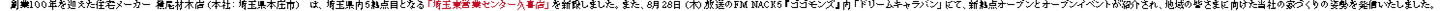 創業100年を迎えた住宅メーカー 横尾材木店(本社:埼玉県本庄市) は、埼玉県内5拠点目となる「埼玉東営業センター久喜店」を新設しました。また、8月28日(木)放送のFMNACK5『ゴゴモンズ』内「ドリームキャラバン」にて、新拠点オープンとオープンイベントが紹介され、地域の皆さまに向けた当社の家づくりの姿勢を発信いたしました。