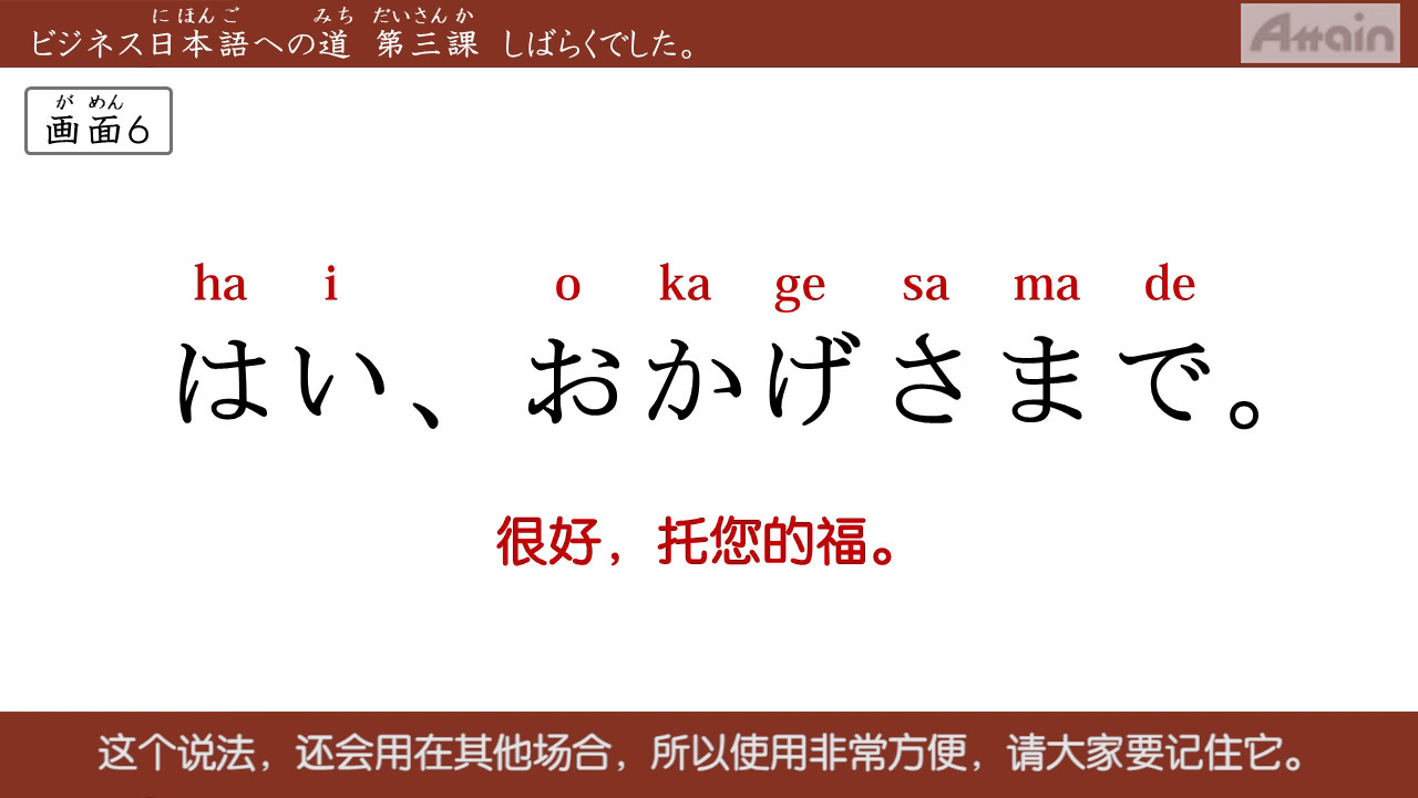 オンライン日本語学習サイト(Attain Online Japanese)運営、eラーニング制作のアテイン株式会社(本社:東京都江東区、電話:03-6381-8641)が、高知県から委託を受け「令和7年度 初級日本語オンライン教室運営業務」として、高知県在住の外国人を対象に日本語能力向上のための日本語eラーニング(4言語字幕動画教材)を無償提供をしておりますが、この度中国語字幕コースの提供を9月9日に開始します。