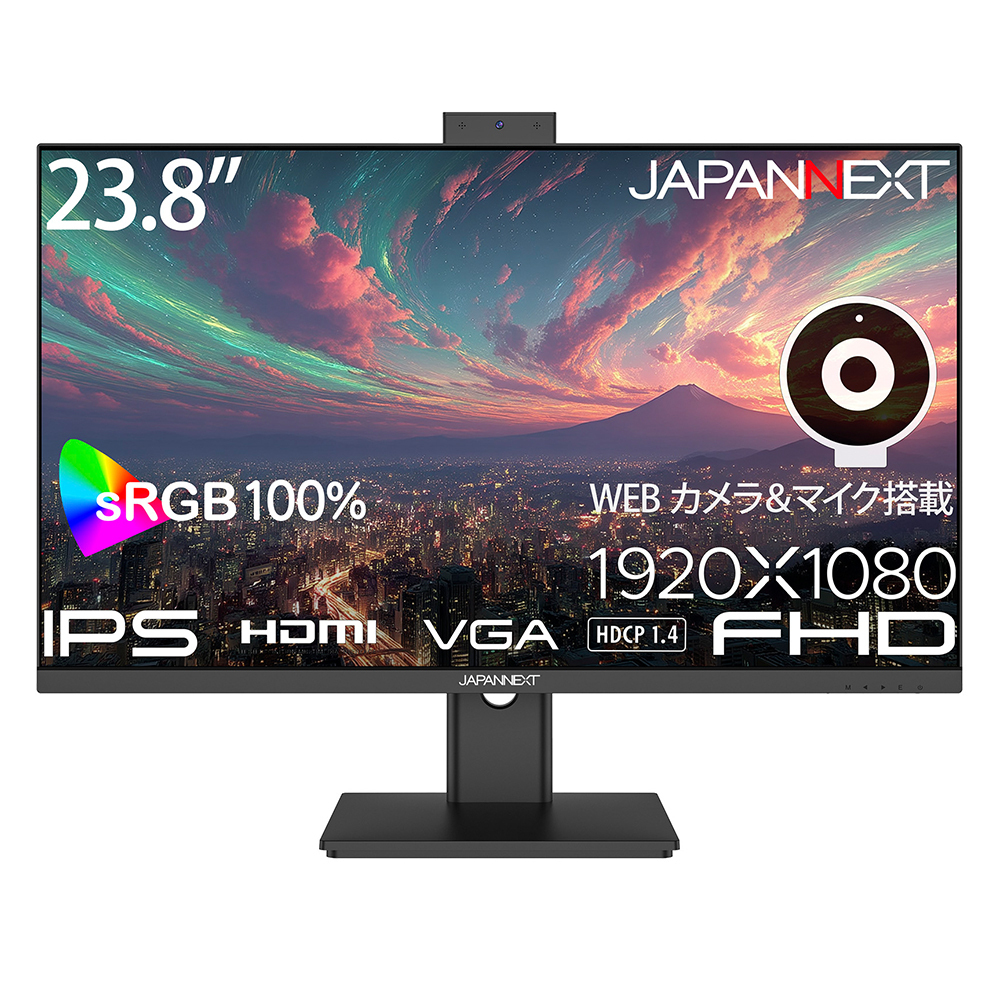 JAPANNEXTが23.8インチ Webカメラ(500万画素)とマイクを内蔵したフルHD液晶モニターを19,980円で9月5日(金)に発売