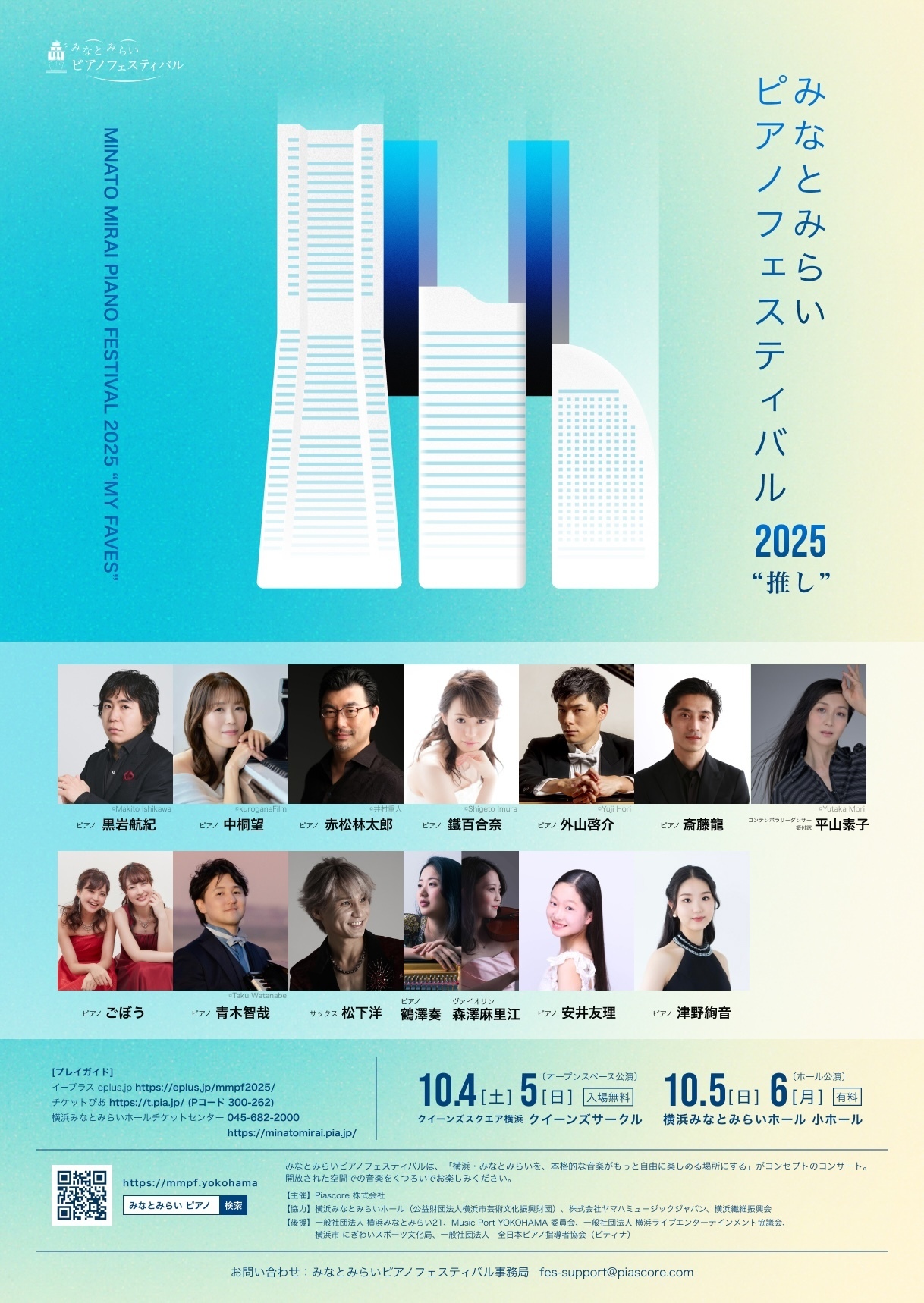 後援:一般社団法人 横浜みなとみらい21、Music Port YOKOHAMA委員会、一般社団法人 横浜ライブエンターテインメント協議会、横浜市 にぎわいスポーツ文化局、一般社団法人 全日本ピアノ指導者協会(ピティナ)