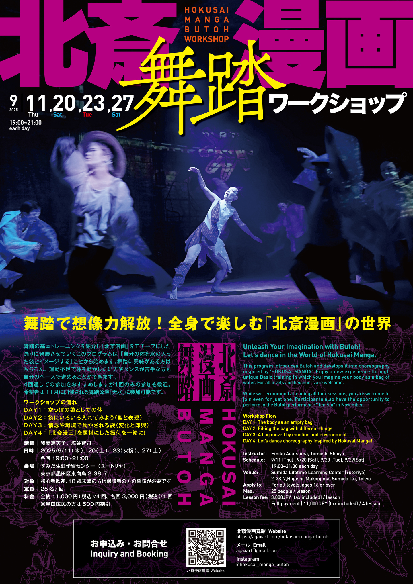 【9月11, 20, 23, 27日】北斎漫画舞踏ワークショップ舞踏で想像力解放!全身で楽しむ『北斎漫画』の世界!