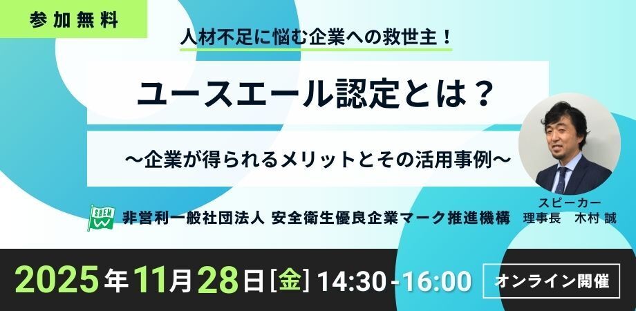 日本初の「ホワイト企業マークコンサルタント」として豊富な経験を持つ、非営利一般社団法人 安全衛生優良企業マーク推進機構(SHEM)が、人材不足や採用力強化を目指す企業に向けたセミナーを開催します。第一部では「ユースエール認定制度」に焦点をあて、若者雇用促進が企業文化や業績にもたらす効果、認定取得の基準やステップをわかりやすく解説。実際の事例を交えながら、企業が得られる具体的なメリットをご紹介します。第二部では「ホワイトマーク(安全衛生優良企業公表制度)」を中心に、複数あるホワイト企業マークの違いや特徴を整理。どのマークを選ぶべきか、そして取得を成功させるためのノウハウや事例を提示し、自社に合った認定取得の道筋を明らかにします。人材確保と企業価値向上の両立を目指す経営者・人事担当者の皆さまに、認定制度を活かした実践的なヒントをお届けします。