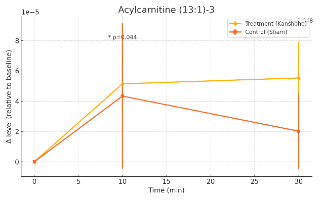 ·  施術わずか10分後に21種類の血中代謝物質が有意に変動することを確認。一酸化窒素(NO)前駆体の増加、ストレス関連ホルモン代謝産物の低下、抗炎症・抗酸化作用を持つ代謝物質(オーラプテンなど)の上昇など、多方面に有益な即時変化が起こりました。