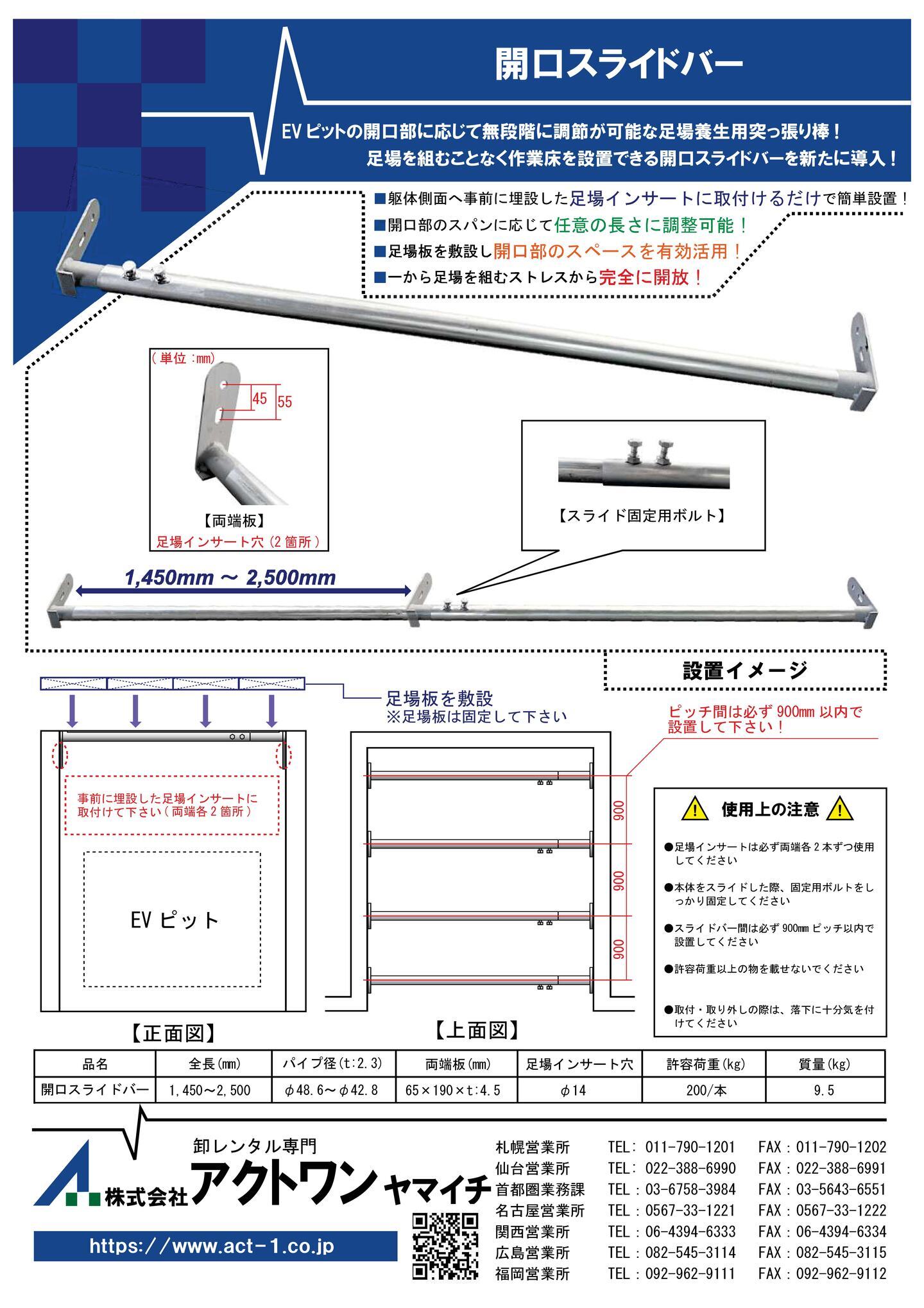 【アクトワンヤマイチ】新規取扱商品「開口スライドバー」レンタル開始