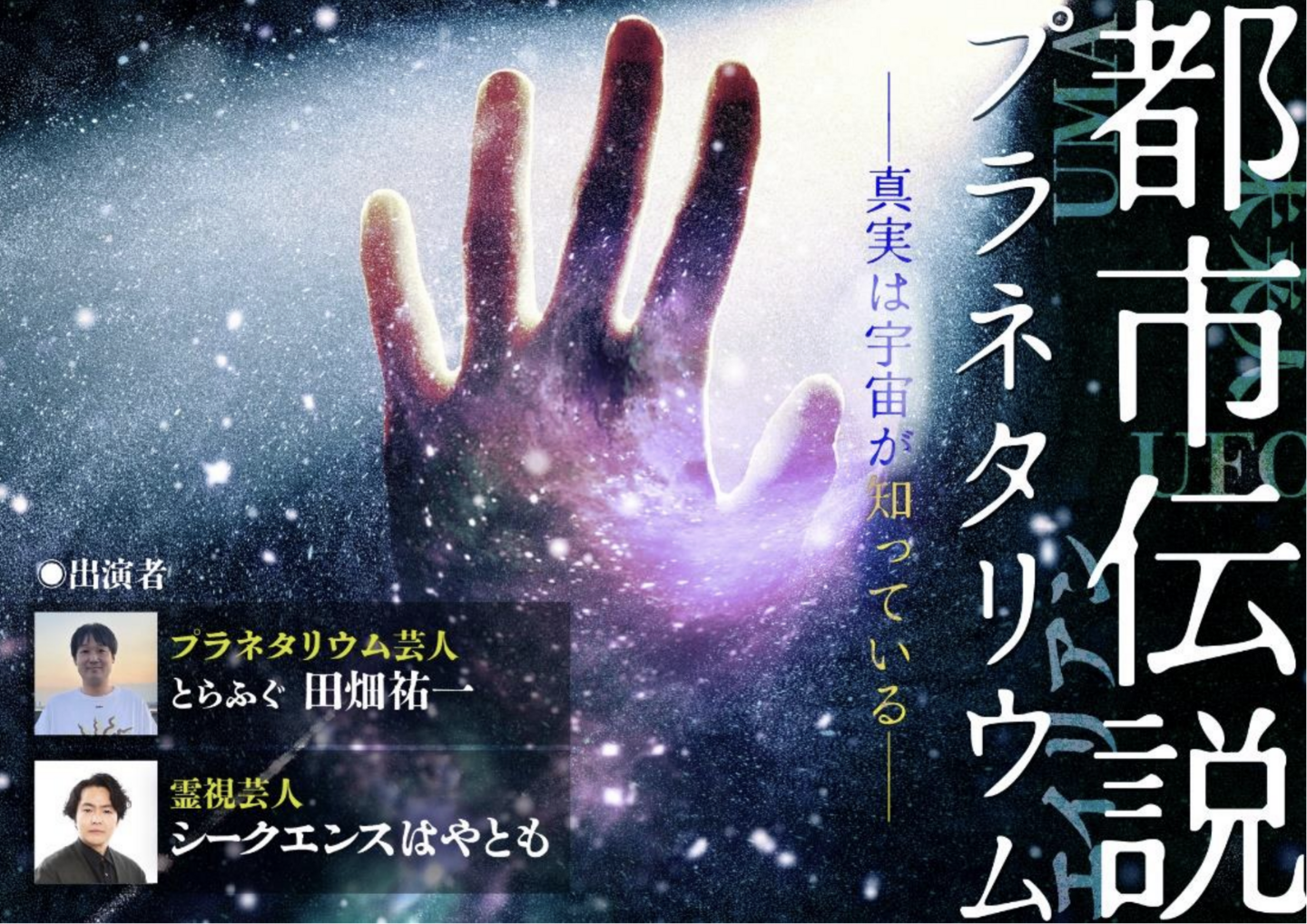 プラネタリウム&宇宙好きの芸人・田畑祐一と、“見える芸人”として知られるシークエンスはやともが、都市伝説と宇宙の“交差点”を語り尽くします。