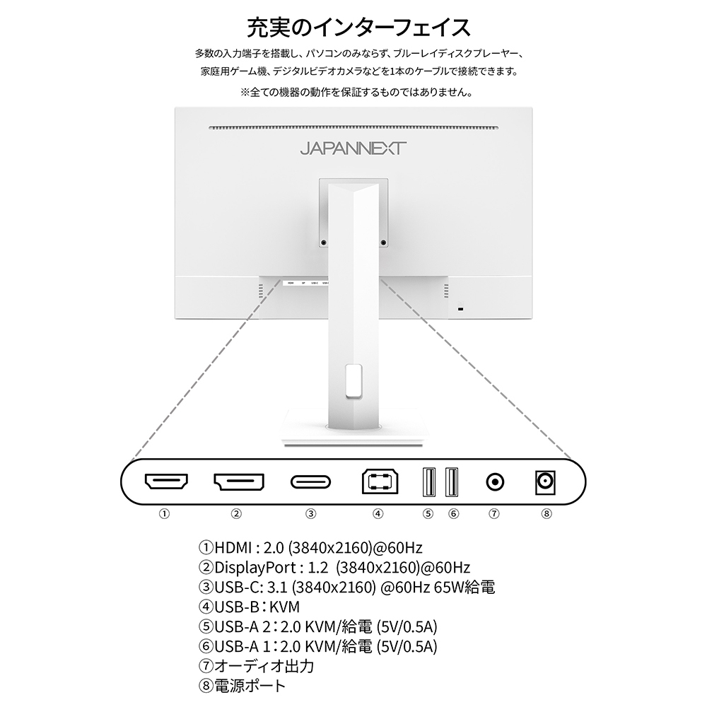 USB-C(最大65W)給電対応 4K液晶モニター(ホワイト)商品概要