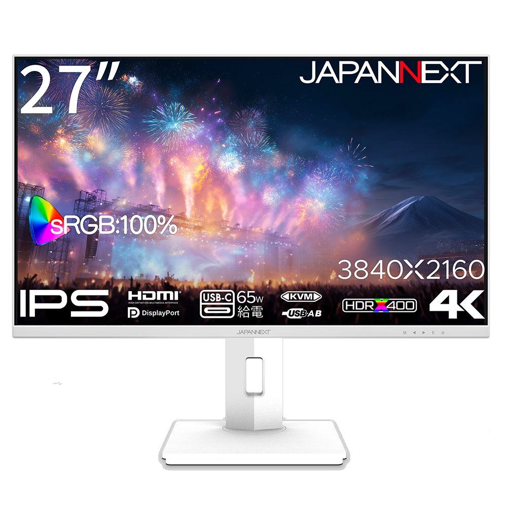 JAPANNEXTが27" IPSパネル 昇降式スタンド搭載 USB-C給電対応の4K液晶モニター(ホワイト)を39,980円で9月26日(金)に発売