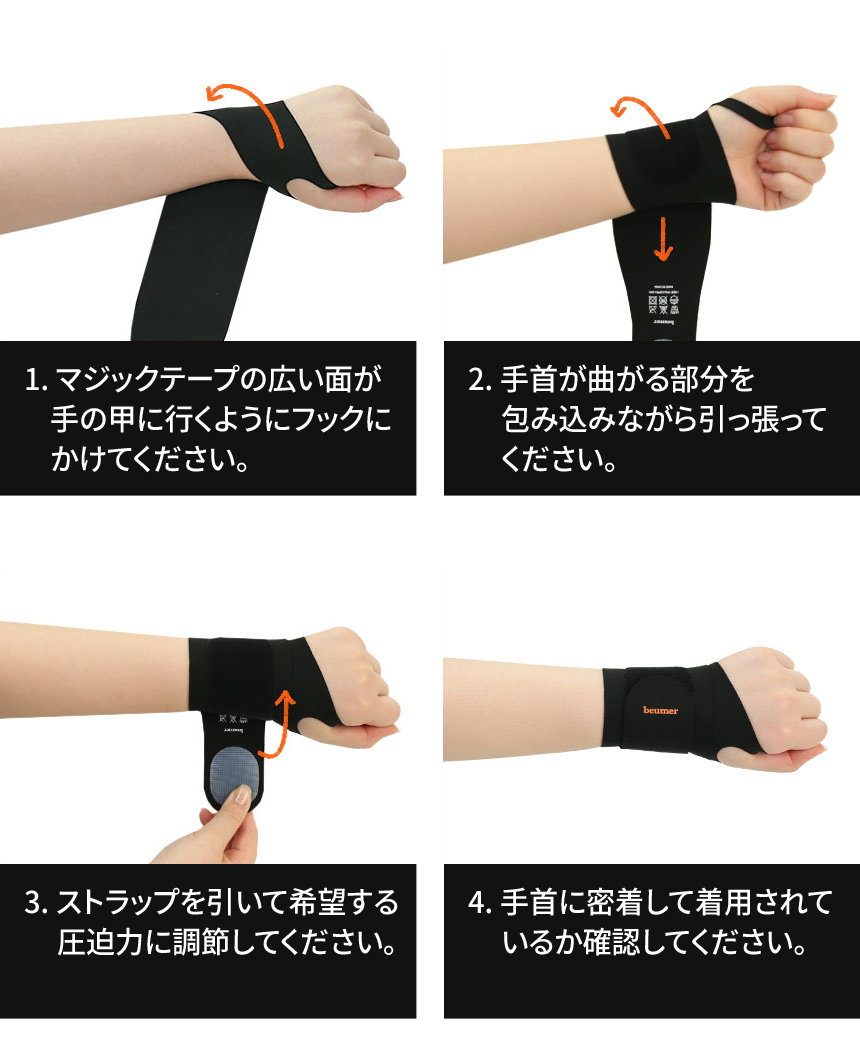 手首の不便さによって固定しなければならない部分は少しずつ違います。