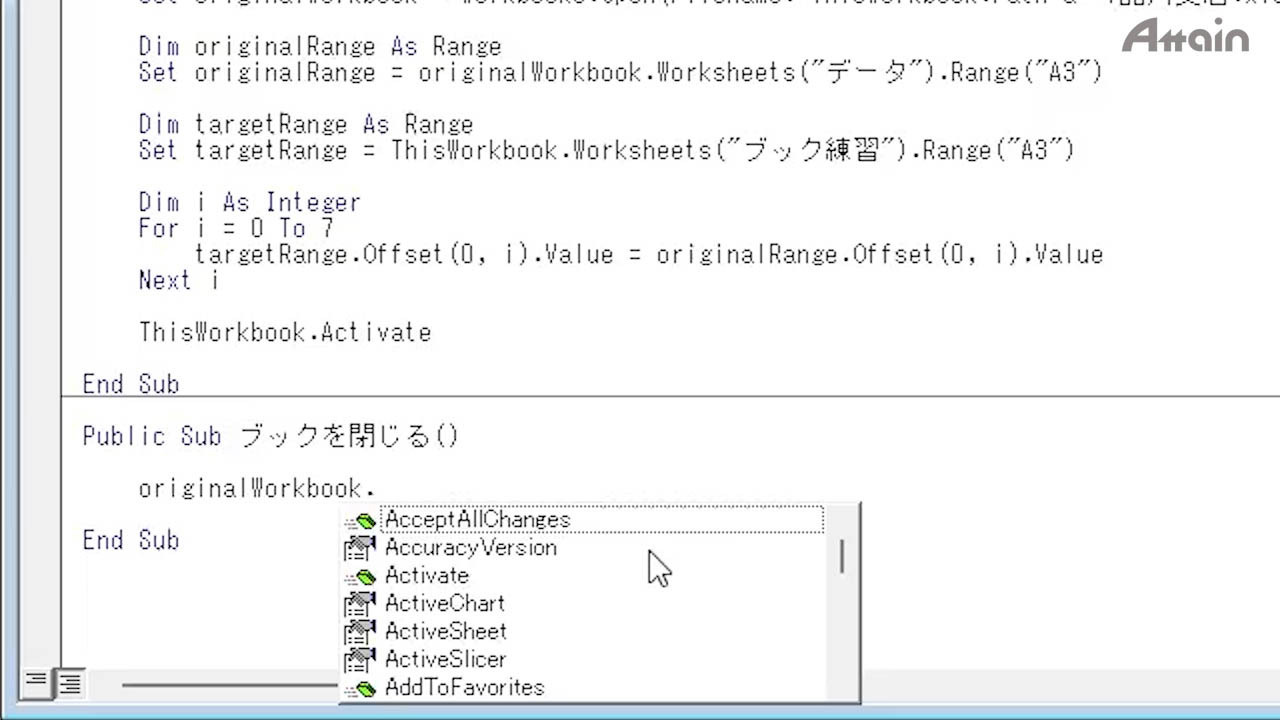 コンピュータートレーニング教材制作、eラーニング向けコンテンツ制作のアテイン株式会社(本社:東京都江東区、電話:03-6381-8641、代表:福嶌崇臣、資本金:1億1470万円)は、法人向けのeラーニングコンテンツ年間レンタルサービスに新たなラインナップとして、定番表計算ツールの最新版「Microsoft Excel 2024」でVBAのプログラミングの基礎を習得したい人のための教材、動画で学べる「Microsoft Excel 2024 VBAプログラミング基礎」講座を上下巻構成で、10月6日に提供開始します。