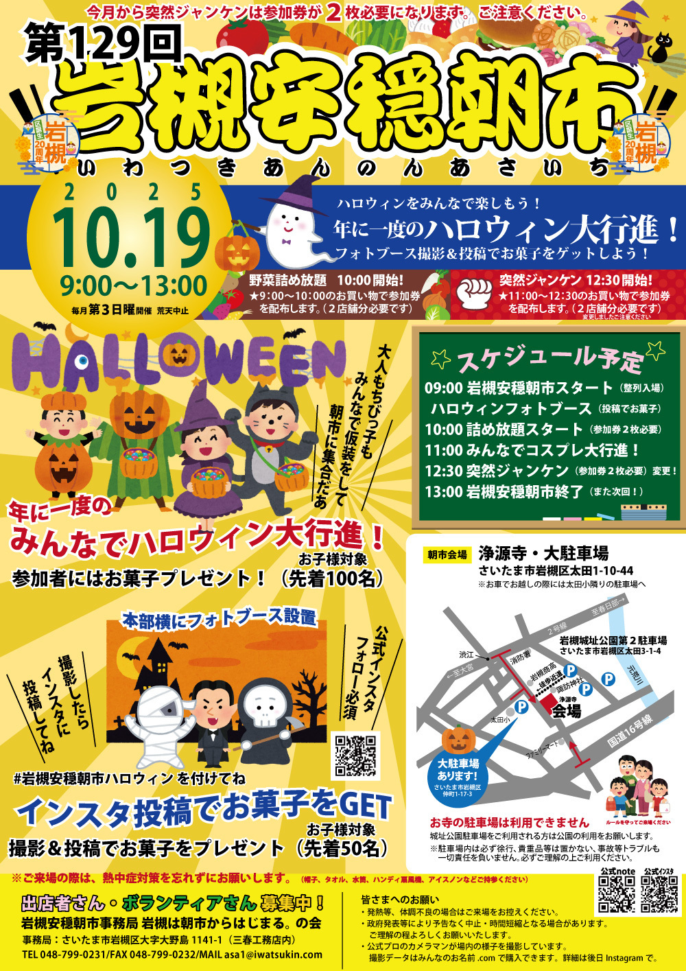 【10/19】第129回岩槻安穏朝市〜年に一度のみんなでハロウィン大行進!フォトブースもあるよ♪(今月からジャンケン参加券は2枚になります)