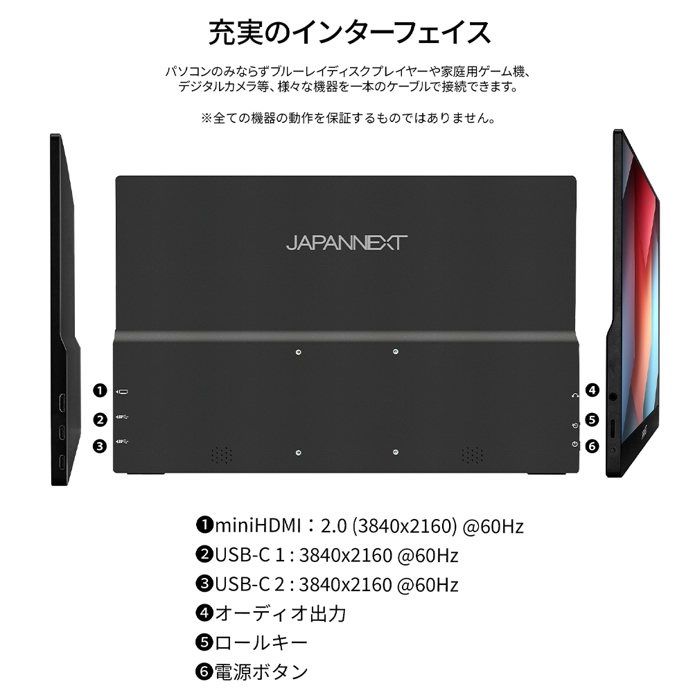 | 入出力端子 | miniHDMI 2.0 x1 (60Hz) USB-C x2 (60Hz) オーディオ出力×1 |