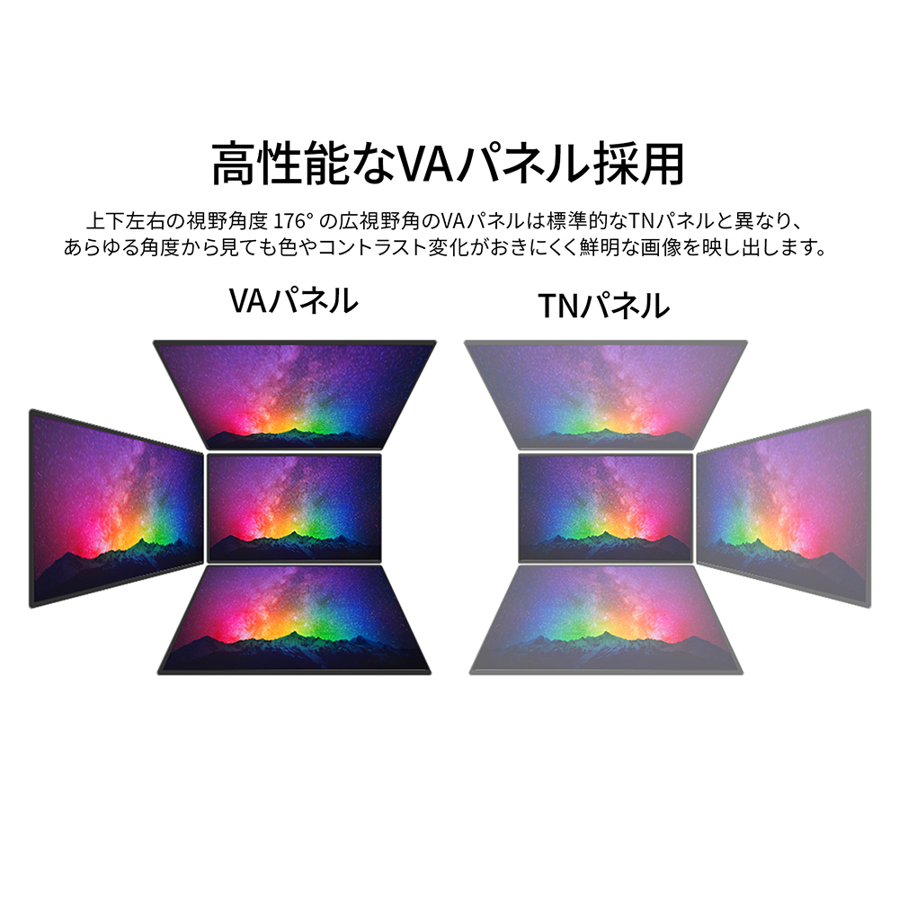 高画質VAパネルを採用。4800:1の高コントラスト比は、より黒をくっきりと表現をすることが可能、写真や動画を色鮮やかに映し出します。