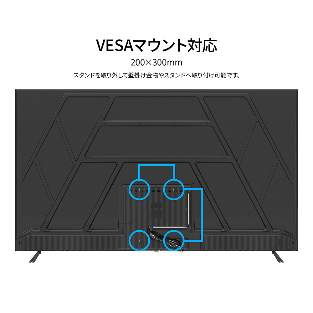 200x300mmのVESAマウントに対応しますので、対応の壁掛け金具やスタンドなどに取り付けが可能です。10Wx2のスピーカーを内蔵します。便利なリモコンを同梱。USBメモリ再生、メニュー操作、音量調整や入力切替などの操作を行えます。