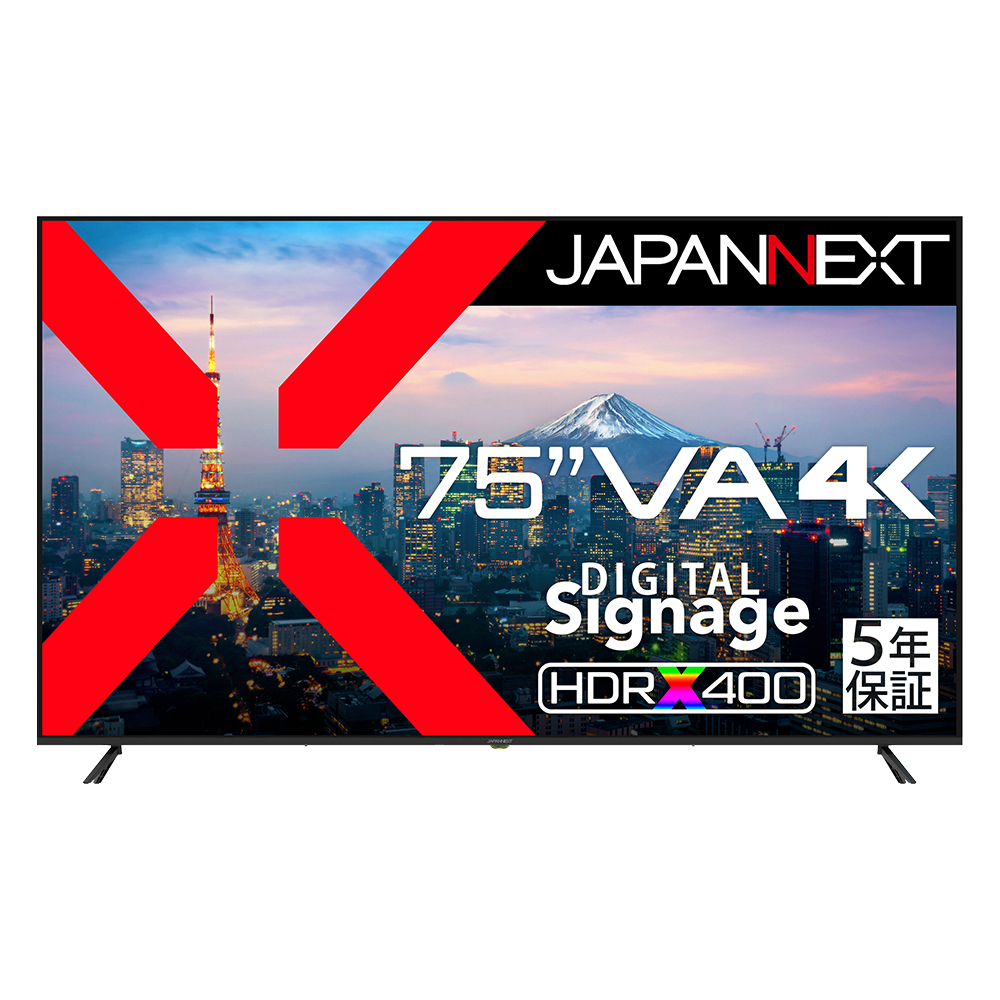 JAPANNEXTが75インチ VAパネル搭載 USBメモリ再生対応の4K大型液晶モニターを194,980円で10月10日(金)に発売