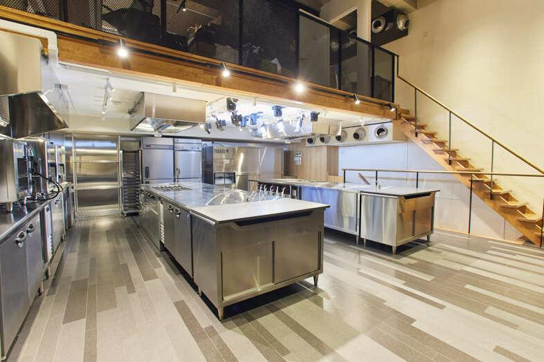 ・両フロアに島型プロ仕様キッチン×2、豊富な調理器具を完備(ガスコンロ・鉄板グリル・大型シンク・コンベクションオーブン2台・冷蔵庫など)