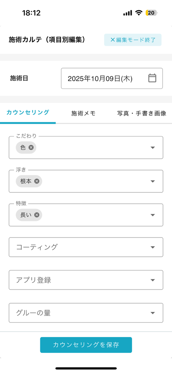 ・施術カルテ画面
