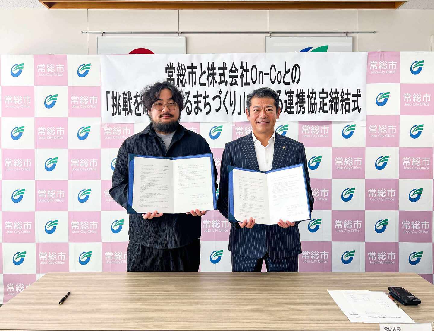 株式会社On-Co(本社:三重県桑名市、代表:水谷岳史、以下On-Co)は、常総市(市長:神達岳志)と、2025年10月8日に「挑戦を応援できるまちづくりに関する連携協定」を締結しました。三重県桑名市、高知県香美市、三重県との連携協定に続く4例目となります。