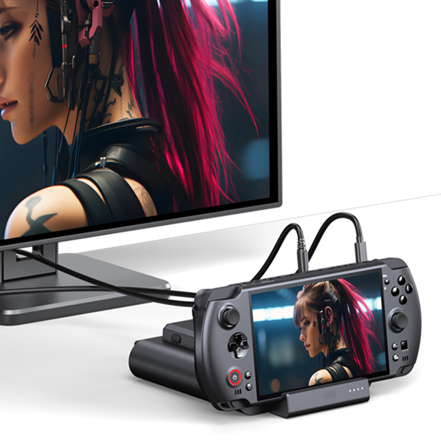 GPDが独自に開発した「FlexPower」技術を採用し、世界で唯一、外部80Wh着脱式バッテリーを搭載したポータブルゲーミングPCです。バッテリーをケーブルでつなぐことで長時間のスタンドプレイにも対応、またバッテリー単品でも販売しているため、複数個持ち歩くことで外出先でも長時間のゲームプレイに対応します。また家では付属の180W電源を接続することでバッテリーがなくても安定して遊ぶことができ、また別売りクレードルを使うことで高性能ミニデスクトップPCとして利用できます。