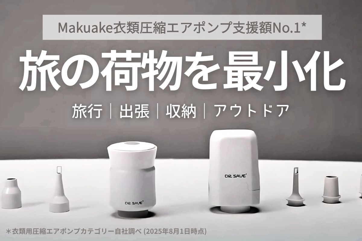 本プロジェクトで紹介する「DR.SAVE エアポンプ」は、衣類や寝具の圧縮はもちろん、アウトドアでのエアマット膨張やバーベキューの火起こしなど、幅広いシーンで活躍する多機能ポータブルポンプです。