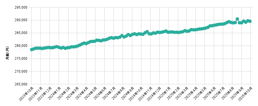全国正社員平均月給は「289,491円」【2025年10月度 正社員平均月給・求人数レポート】