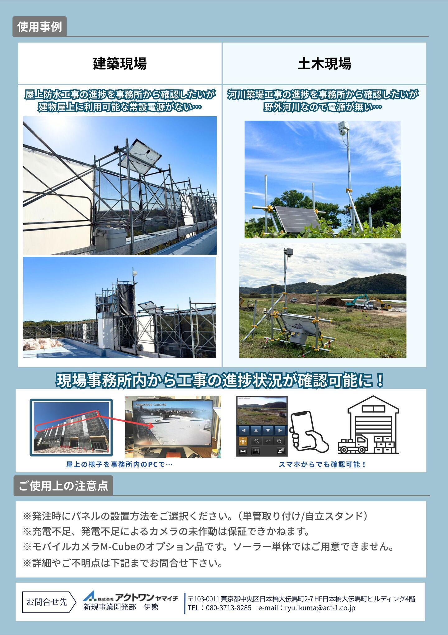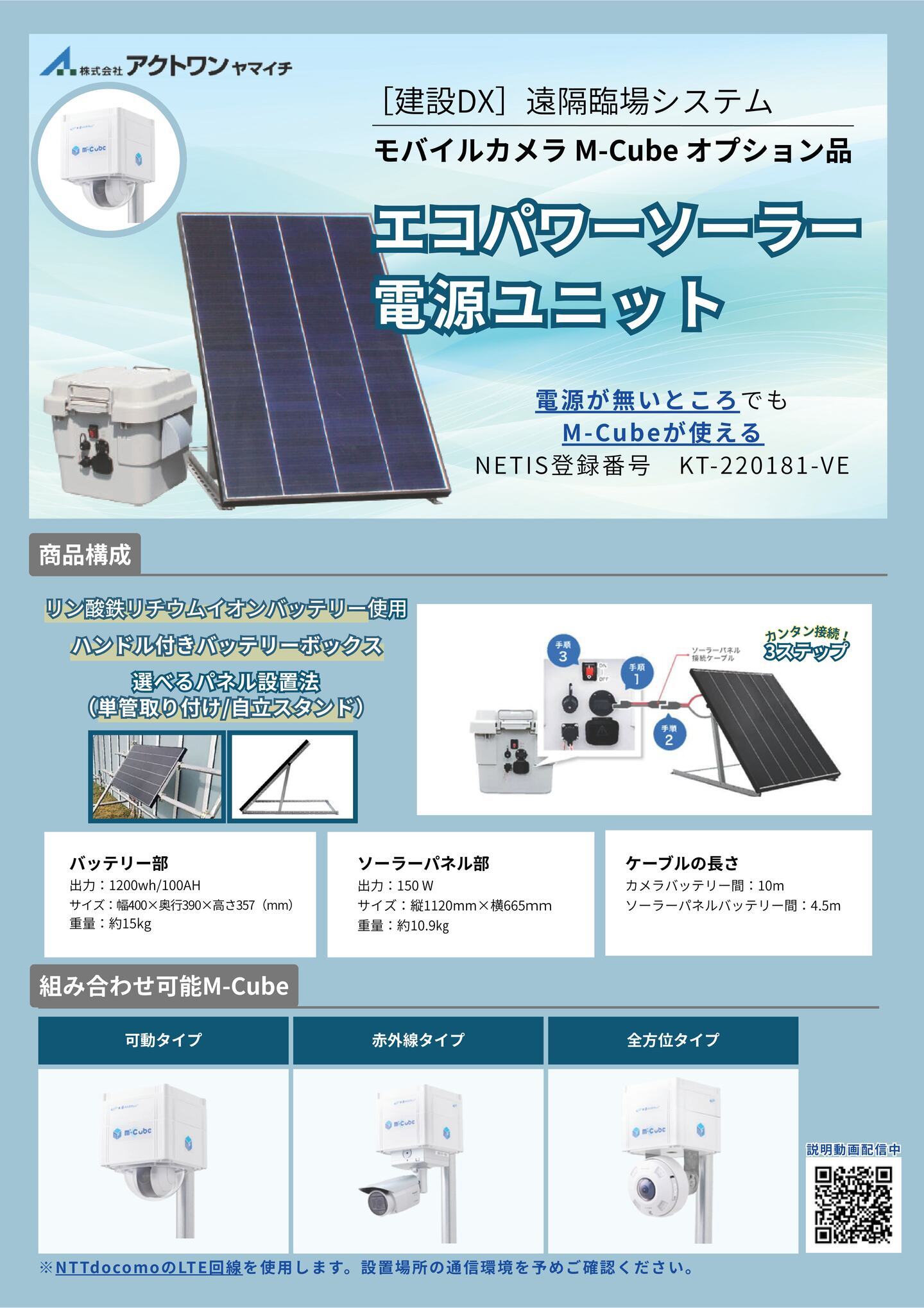 建設用軽仮設機材の卸レンタルを行う株式会社アクトワンヤマイチ(本社:大阪市北区、代表取締役・山田耕次)は、2025年10月22日(水)より、モバイルカメラM-Cubeのオプション品「エコパワーソーラー電源ユニット」のレンタルを開始します。