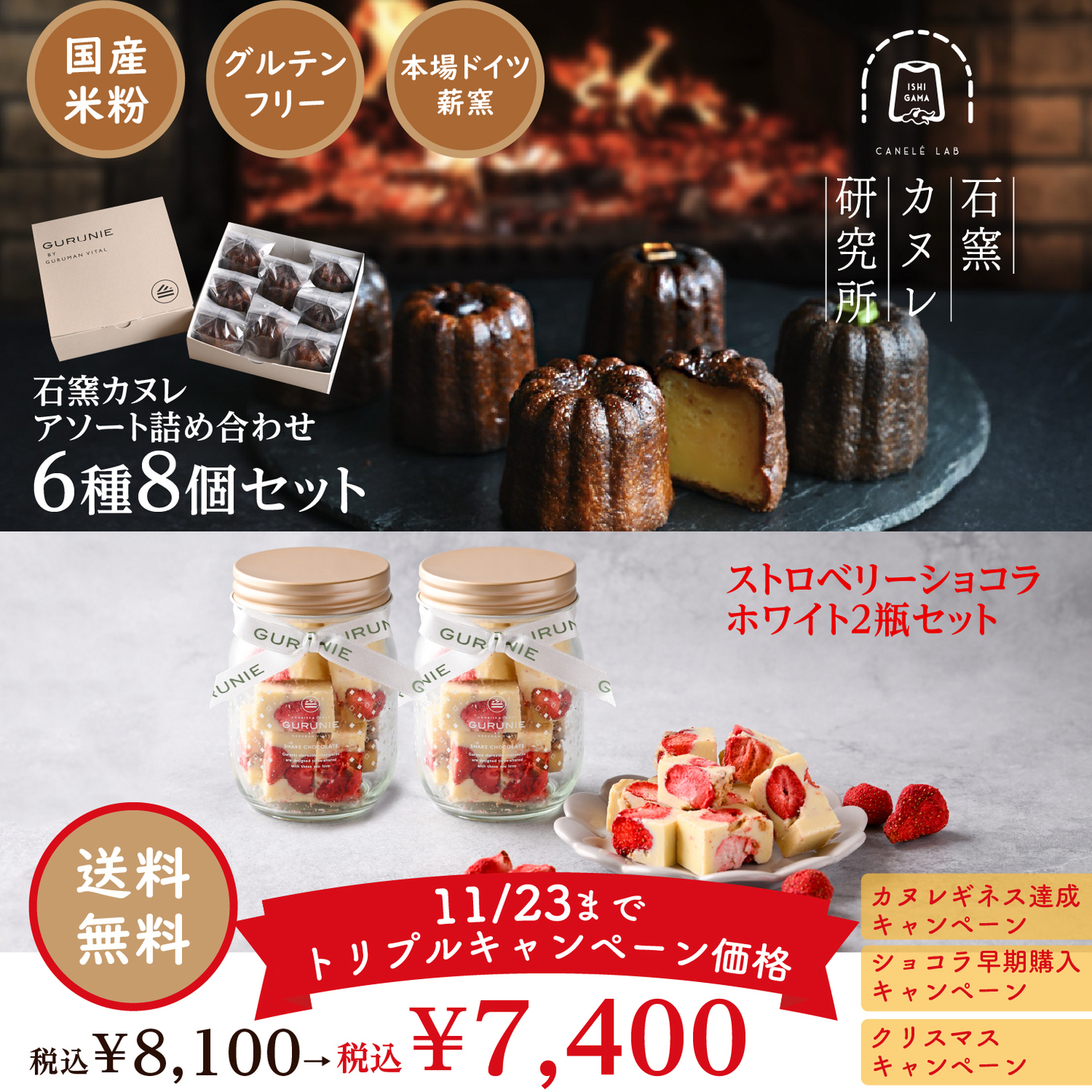 ◎石窯カヌレ6種8個セット & ストロベリーショコラ2瓶セット(通販限定・トリプルキャンペーン特別価格)