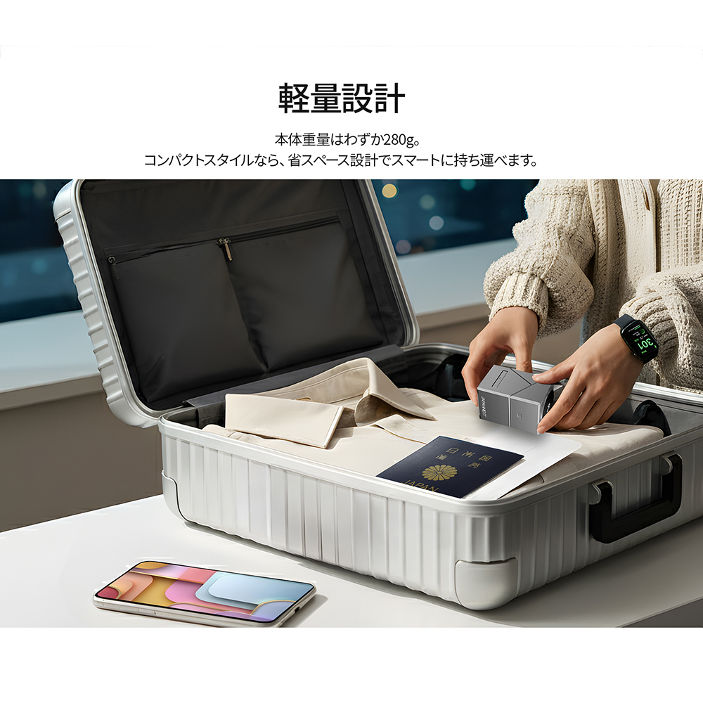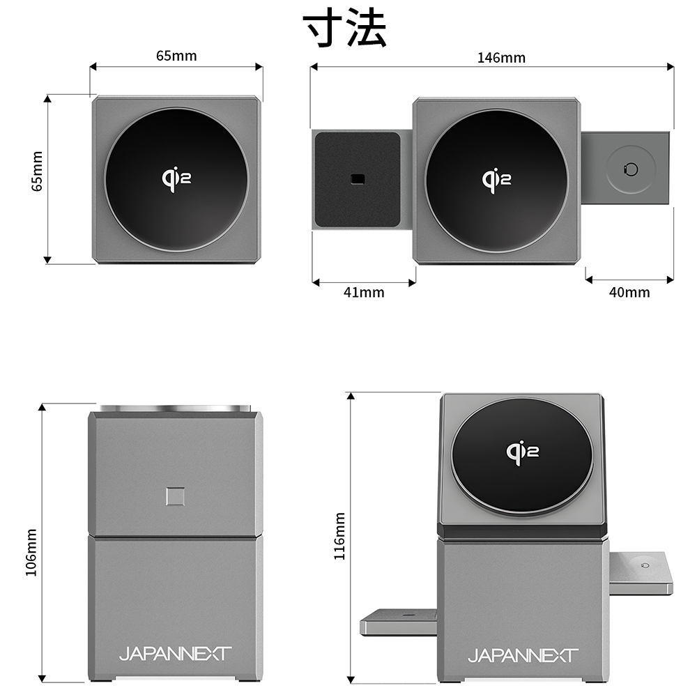 ・フルアクティブスタイル:スマートフォン・AirPods・Apple Watch 全てを同時に充電が可能。サイドの充電部は展開・収納が簡単に行えるため、シーンに合わせたスマートな充電環境を実現します。