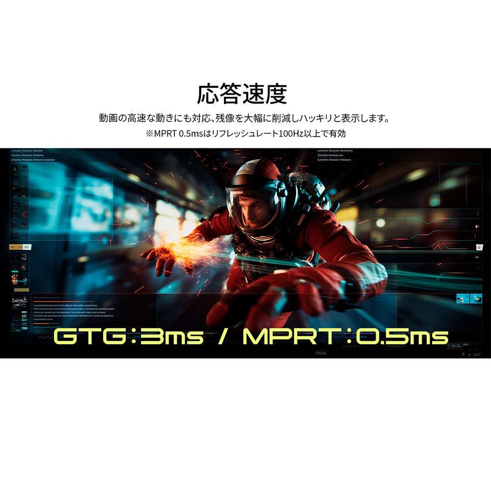 3)4K:180Hz (フルHD:360Hz)の高速リフレッシュレート、0.5ms(MPRT)の高速応答速度