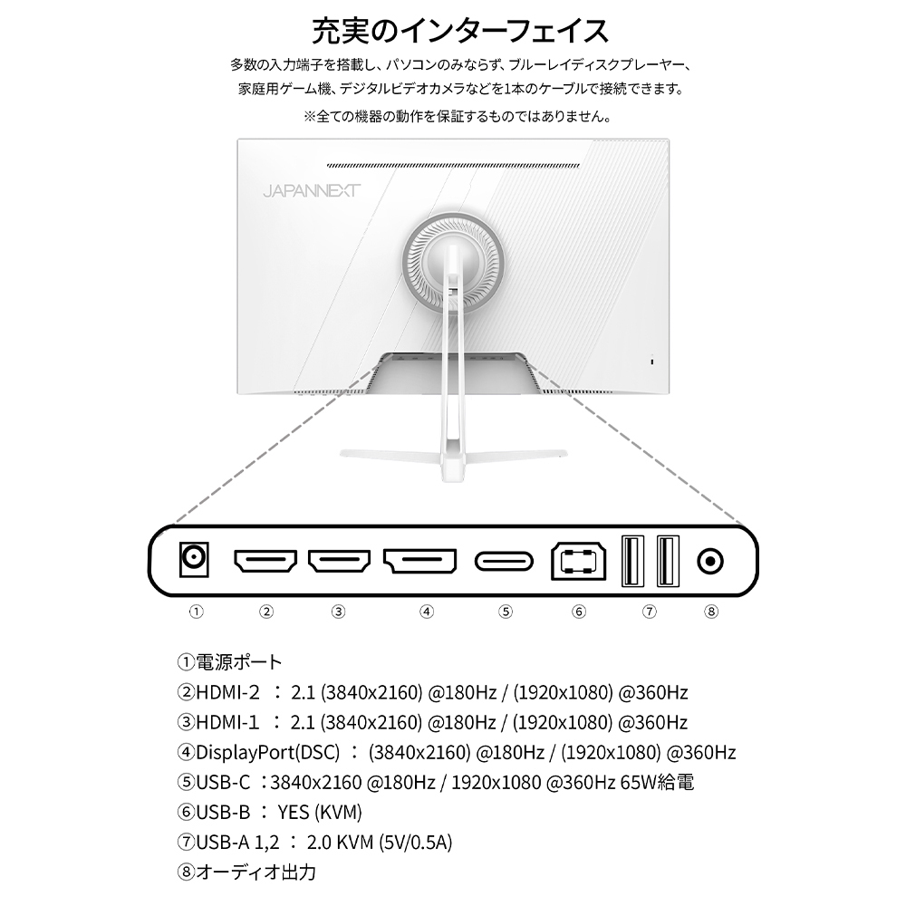 USB-C x1 (4K:180Hz/フルHD:360Hz/最大65W給電)