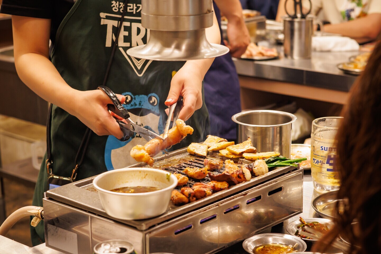 6年連続で「ビブグルマン」の評価を獲得した人気韓国料理店のオーナーを務める、全 敞一(ぜん・しょういち)氏が監修。壁に貼られたポスターも現地のものを取り寄せた、まさに”本場韓国”の雰囲気です。店内はカウンター席がメインで、お一人様から最大18名の団体まで利用できます。気さくなスタッフがカウンター越しに会話をしながら、目の前で料理を作り上げます。