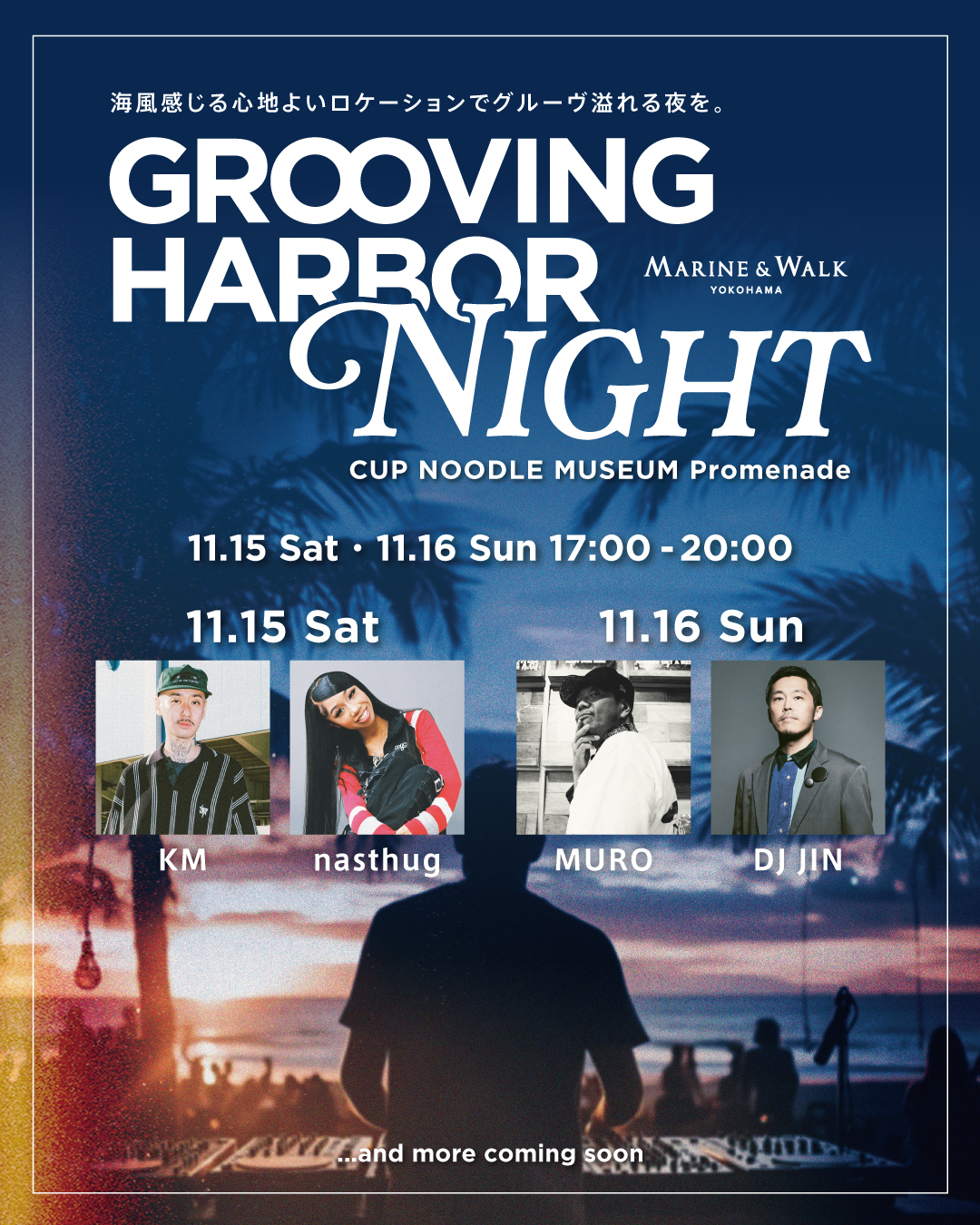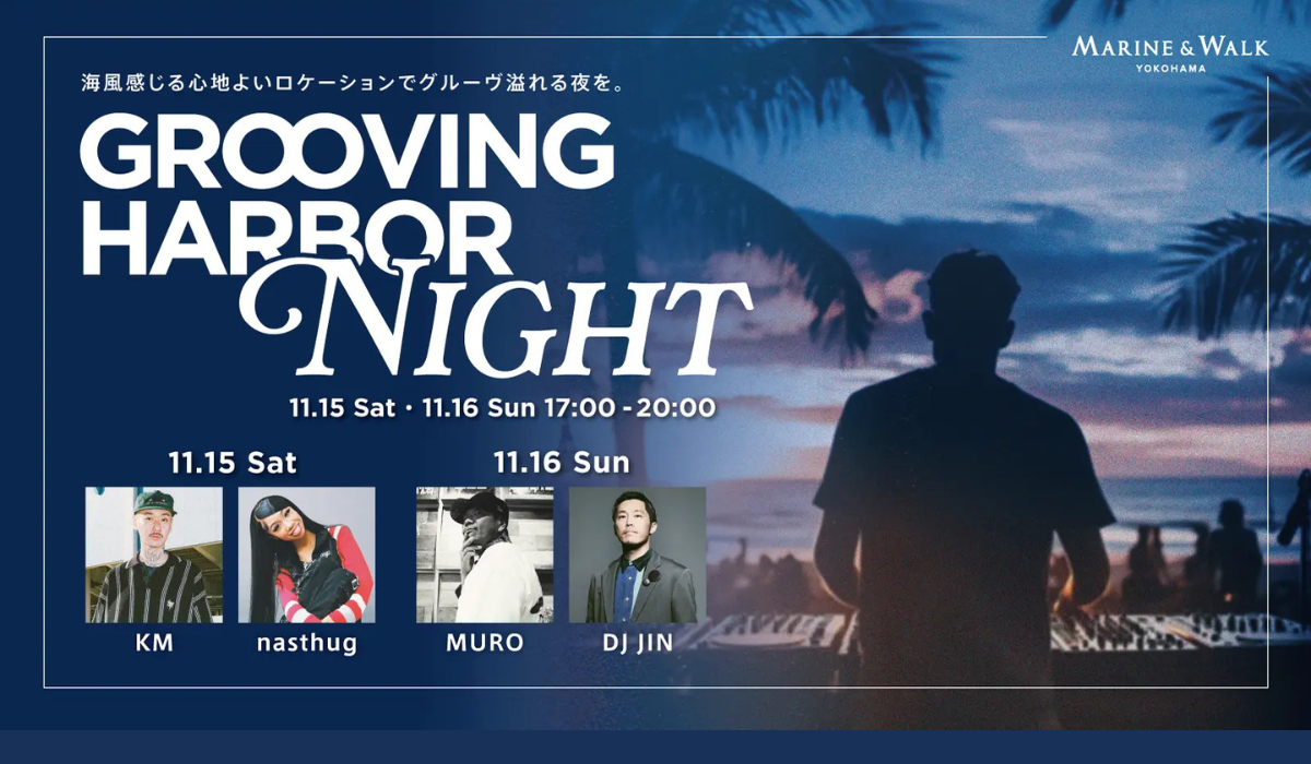 海沿いの商業施設「MARINE & WALK YOKOHAMA」で、11月15日(土)・11月16日(日)、心地よい音楽と夜景を楽しむDJイベント 「GROOVING HARBOR NIGHT」 を開催します。