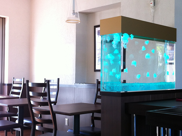 2000年の発表以来、NHK「おはよう日本」や全国紙の1面で紹介。人工筋肉技術を応用した特殊樹脂により、生きたクラゲのような“ゆらぎ”を再現し、安心感や居心地の良さを演出します。設置後は水質管理不要、メンテナンス完全サポートで手間なく運用できます。